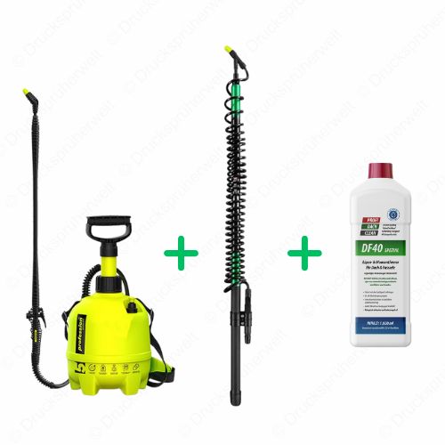 dc030B: P5 Drucksprüher + B-Ware-KWT500 Teleskoplanze 5m + 1L Profidachclean DF40